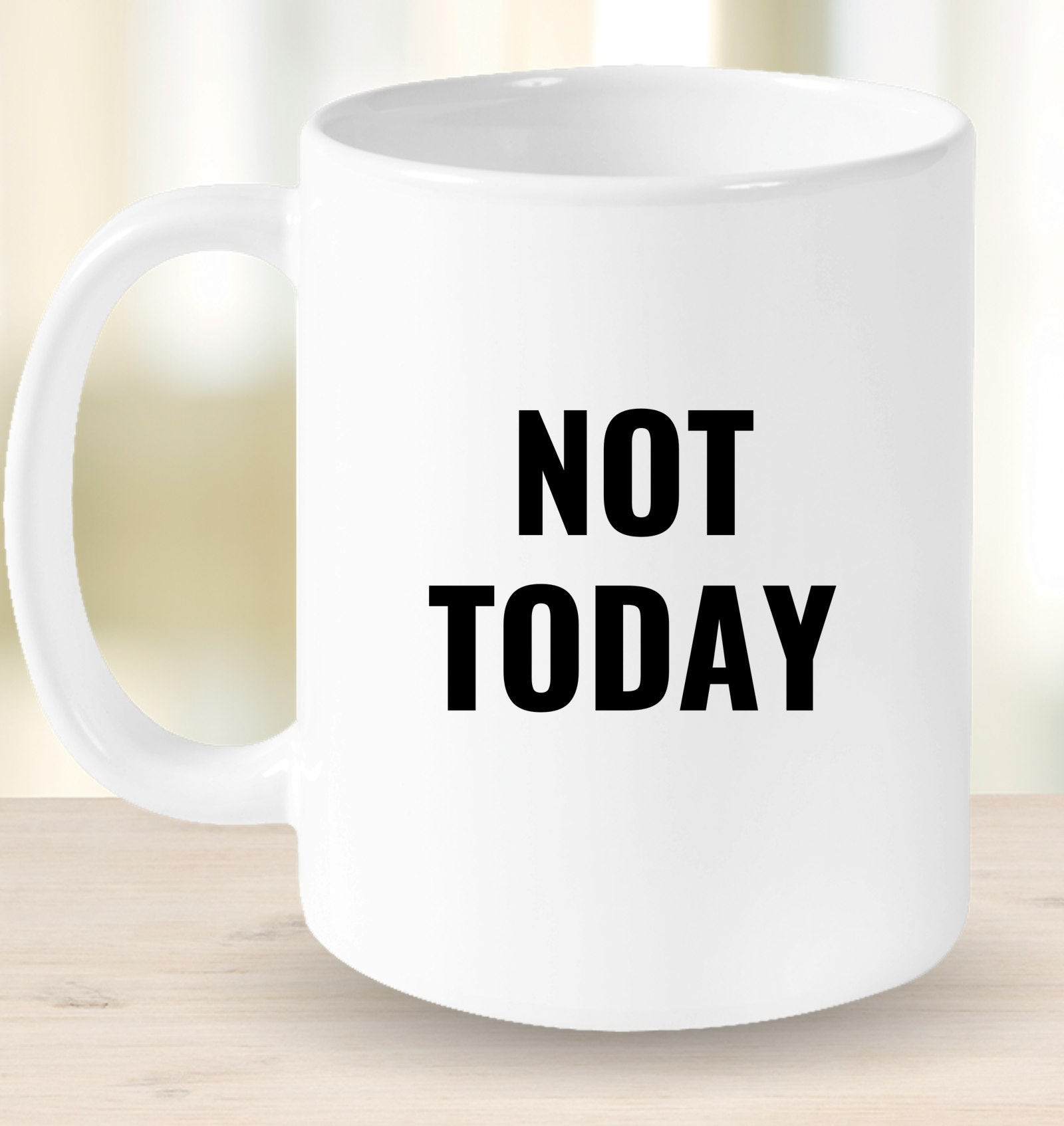Mondays? Early meetings? Unwanted small talk? Let your mug say what you're thinking with a firm but fair "Not Today." Perfect for those moments when you need a bit of coffee-fueled courage to keep your boundaries strong.