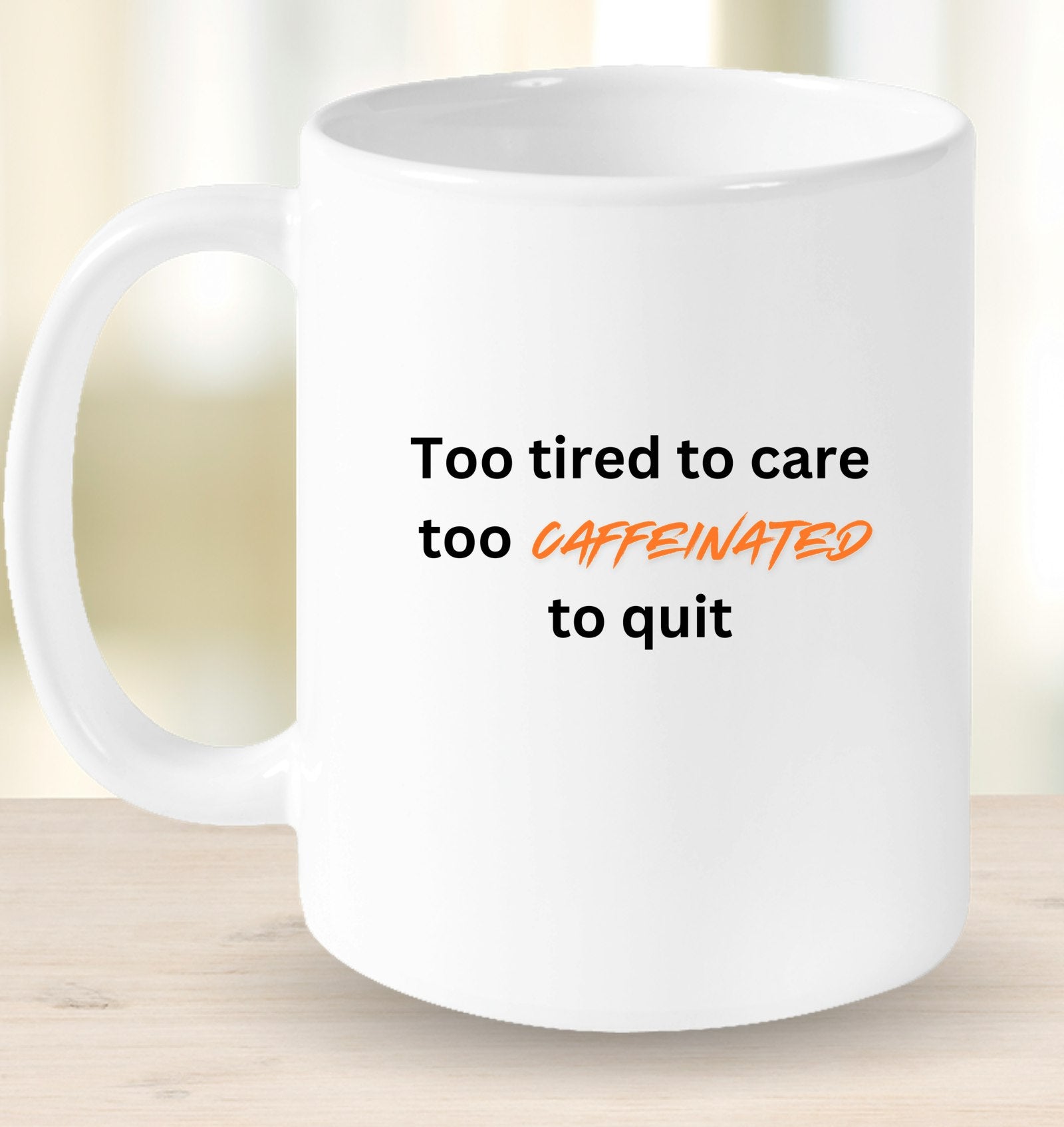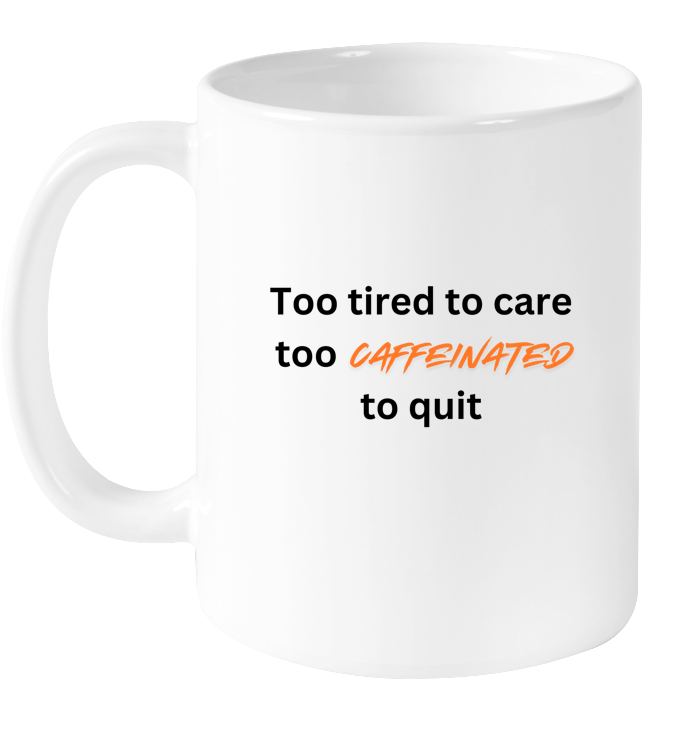 ☕️ Power through the day with the Too Tired to Care, Too Caffeinated to Quit mug! This gem is made for those days when you're running on fumes but coffee's got your back. Whether you're ready to give up or gearing up for round two, this mug fuels your fight. Sip, power up, and keep going – because quitting's not an option! 💪☕ #CaffeinatedAndUnstoppable #CoffeeStrength #TooTiredTooCaffeinated